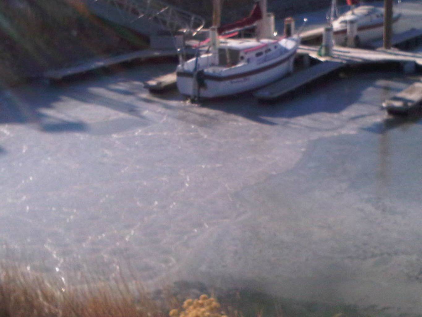 GSL Slip Renters and Marina Users. The marina is now frozen solid. No point in coming out if you were planning on sailing today (or paddling, or kayaking, or sculling, OR SWIMMING). We will try to get Rescue One out today to break up the ice. This ice should pose no threat to your boats. Dave Dave Shearer Harbormaster Great Salt Lake State Marina 801-209-9142 IMG00017-20110202-0926.jpg