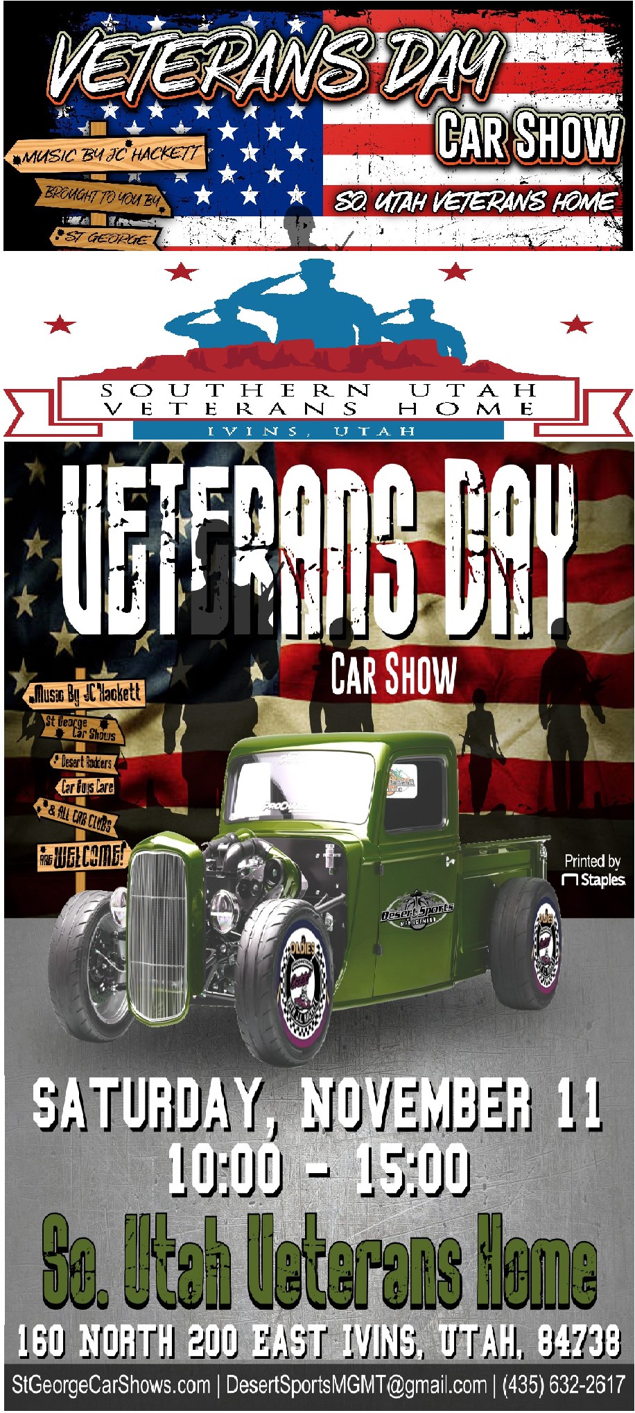 GREETINGS EVERYONE !!! Come and enjoy the WARM Weather and Raise funds to help our Veterans at the same time.. 160n 200e Ivins Utah 435-632-2617, Hope to see you SATURDAY !!!!!! Only Days Away!! Last Year on Nov 12 2022, All of US Raised around $3,500 At the Ivins Veteran Home. Every Penney stayed there to help in any way it could... Make plans to attend or stop by this Saturday and lets see what we cad to for them this year! We owe our VETERANS everything we can do for them.. There is NO WAY we could ever re-pay them for their service to our Country.. But this is a real good start! Jc Come and join in a Fun Family Event, You will be very glad you did,, Please check our website for More of our fun, And event information <http://www.jchackett.com/events> www.jchackett.com/events If you would like to email us,, our address is <mailto:jc@jchackett.com> jc@jchackett.com If you know of anyone who would like to receive "Cruise Event Related" information, Simply have them shoot us an email.. They will be added to our mailing list, <mailto:jc@jchackett.com> jc@jchackett.com or <mailto:hackett56@comcast.net> hackett56@comcast.net As you see, it is "blind copied" so others will not get your address.. Please feel free to pass this along to your friends. A Most Important rule to follow.. BE NICE, Think of others, Give someone, ANYONE a SMILE.. You would be so surprised how it will make YOU feel! **** Please do NOT "hit reply" to this email, **** It goes to a mailing service ***** FUTURE EVENTS Oh Wait,,,, There is MORE .. FUTURE J.C Hackett Hosted EVENTS 11 NOV, SAT St. George VETERANS Appreciation Car Show, Ivins Veteran Home 160n 200e Ivans Ut. 435-623-2617 <http://www.stgeorgecarshows.com> www.stgeorgecarshows.com Veterans Day 23 NOV, THU Thanksgiving Day 2 DEC, SAT Toys for Tots, St. George CARQUEST, Car Guys Care 920n 2100w 435-619-9770 Shane 9 DEC, SAT Mesquite, St. Nicks Toy Run CAR SHOW, Wedgies Sports Bar, 796w Pioneer Blvd. Entry fee, Toy(s) donation, <http://www.stgeorgecarshows.com> www.stgeorgecarshows.com 435-632-2617 24 DEC, SUN Christmas Eve 25 DEC, MON Christmas Day 31 DEC, SUN New Year's Eve 1 JAN, MON New Year's Day 17 JAN, WED 8 - 9am Spazz night 14 FEB, WED Valentine's Day 17 FEB, SAT Red Car Show 5375 Cameron St. Las Vegas 19 FEB, MON Presidents' Day 10 MAR, SUN Daylight Saving Time starts 15 MAR, FRI POCATELLO, Chrome in the Dome.(Fri-Sat Only) <mailto:info@chromeinthedome.com> info@chromeinthedome.com 16 MAR, SAT POCATELLO, Chrome in the Dome.(Fri-Sat Only) <mailto:info@chromeinthedome.com> info@chromeinthedome.com J.C Hackett Oldies "Rock & Roll Radio" Productions Real Oldies, KCPX P.O Box 271226 Salt Lake City, Utah 84127 <http://www.jchackett.com> www.jchackett.com Email us at <mailto:jc@jchackett.com> jc@jchackett.com