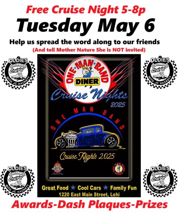 Greetings Everyone.. Page Arizona Annual Car Show was an absolute blast! Small town show, put together by a Car Club, with "old School" standards. Leading the way on Friday Cruise all around town was Page Police and County Sheriffs Blocking every intersection for a nice un-interrupted Show Vehicle parade cruise. Saturdays Show was stunning, around 100 entries of all types. Craft vendors and Food Trucks of course, Even "Fab-Rats" in attendance! Event coverage by .. <https://www.facebook.com/tash.livingstun?__cft__%5b0%5d=AZV5gKjQuvZz0fYZEVi fi57n9myDSwSLGp1nRoVpI_CUjR_7SDFDEQNp8hrWljqNARn2UmNb37WprD1k94vxJIWECXnAlF0 ziEsWcXj3xvPy7CcrL_Yh9vpGOZTmxLU_siQwklDAikm0iNT75wdYQchWNLBV0EhGY1dJaqeex9E YA7tA4vYZIDYGSPDFaBL_m25cGALrtBTEgiJgq6QIhyWr&__tn__=-%5dC%2CP-R> Natasha Livingston Facebook and you-tube And photo coverage by Karen Pettit (Facebook) Be sure to check out the video and photo coverage.. (and express your appreciation, of course!) In Lake Powell Cruisers traditional style, CASH awards included with many awards. Congrats to all award winners AND those who supported and attended this Fantastic Event. HATS OFF TO LAKE POWELL CRUISERS AND THE PAGE CHAMBER (Judy) This event should be on everyone's "Bucket list" and.. accommodations are very reasonable.. And the hospitality ,from the Car Club and Page city is absolutely un-matched! Ask anyone who attended! ****** Up-Coming Events ****** Oh, Wait .. There more, .. than a little More.. Here's a little list of 2025 events we have scheduled.. Make a plan to join in.. Anytime you can, Check our Website for just a few more !! . <http://www.jchackett.com/> www.jchackett.com 6 May, Tue LEHI, One Man Band FREE Cruise Night 801-766-0553 7 May, Wed Jordan Landing FREE Cruise Night, 3751w 70th s. 801-282-1400 9 May, Fri Saratoga CARQUEST Car Show, 2184n Redwood Rd, Saratoga Springs 385-287-0250 10 May, Sat HEBER Carquest FREE Car Show, 434n Main 11 May, Sunday (Heads up Guys!!) Mother's Day 13 May, Tue Murray, Shake Shack FREE Cruise Night, 6123s State 801-448-7907 14 May, Wed PENDING--PENDING Valley Fair Mall, FREE Cruise Night 3600s 2700w 801-969-6211 15 May, Thu South Jordan Daybreak/Soda Row FREE Cruise Night **Back to Parking on the Grass AND Main Street!** 11248s 4700w 801-204-2775 16 May, Fri UVU Swap meet ONLY UVU Campus, North/West Side 17 May, Sat UVU Car Show & Swap Meet, 801-863-7022 UVU Campus, North/West Side 18 May, Sun (Harrisville Utah) North Ogden, FREE Jelsco Awards Car-Truck-Bike show 1150n hwy 89 801-782-7574 24 May, Sat 8 - 9am Not Avail 25 May, Sun 8 - 9am Not Avail 26 May, Mon Memorial Day 27 May, Tuesday DRAPER GARAGE GRILL FREE Cruise Night 4-8pm 1122e 12300s 28 May, Wed LayTon BurgerStop FREE Cruise Night, 323e Gentile Rd 801-544-8090 2 Jun, Mon Oremfest '25. Scera schell Park. 2025 Registration fee donated to American Legion 752 s State, 801-473-1622 Kelly 3 Jun, Tue LEHI, One Man Band FREE Cruise Night 801-766-0553 4 Jun, Wed Jordan Landing FREE Cruise Night, 3751w 70th s. 801-282-1400 5 Jun, Thu 8 - 9am R. F. U '25, Manti Utah 6 Jun, Fri 8 - 9am R F U.. '25 Manti Utah 7 Jun, Sat MALAD IDAHO, Car Show on Main Street, 65n Main St. 10 Jun, Tue Murray, Shake Shack FREE Cruise Night, 6123s State 801-448-7907 11 Jun, Wed PENDING--PENDING Valley Fair Mall, FREE Cruise Night 3600s 2700w 801-969-6211 14 Jun, Sat Sounds of Freedom Car-Truck-Bike Show Layton Commons Park 437n Wasatch Drive Hosted by WASATCH CUSTOMS 801-771-3868 Saturday, June 14 Flag Day 15 Jun, Sun Father's Day 19 Jun, Thu South Jordan Daybreak/Soda Row FREE Cruise Night **Back to Parking on the Grass AND Main Street!** 11248s 4700w 801-204-2775 21 Jun, Sat Sigurd Car Show, Sigurd City Park 801-458-0493 Gary 9a-2p 24 June, Tuesday DRAPER GARAGE GRILL FREE Cruise Night 4-8pm 1122e 12300s 25 Jun, Wed LayTon BurgerStop FREE Cruise Night, 323e Gentile Rd 801-544-8090 27 Jun, Fri Heber.. Welcome Party, Heber City Park, 6pm 801-450-4494 28 Jun, Sat Heber Car Show, Heber City Park 8-3p 801-450-4494 3 Jul, Thu Cache Valley Cruise-in Car Show, Cache Valley Fairgrounds 435-787-7414 Thursday, July 3 8 - 9am Cvca CONCERT 4 Jul, Fri Cache Valley Cruise-in Car Show, Cache Valley Fairgrounds 435-787-7414 Friday, July 4 Independence Day Cvca CONCERT, 6pm 4 Jul, Fri Cache Valley Cruise-in Car Show, Cache Valley Fairgrounds 435-787-7414 5 Jul, Sat Cache Valley Cruise-in Car Show, Cache Valley Fairgrounds 435-787-7414 **** Please do NOT "hit reply" to this email, **** It goes to a mailing service If you would like to email us,, our address is <mailto:jc@jchackett.com> jc@jchackett.com If you know of anyone who would like to receive "Cruise Event Related" information, Simply have them shoot us an email.. They will be added to our mailing list, As you see, it is "blind copied" so others will not get your address.. Please feel free to pass this along to your friends. A Most Important rule to follow.. BE NICE, Think of others, Give someone, GIVE ANYONE a SMILE.. You would be so surprised how it will make YOU feel! CHECK OUR WEBSITE FOR MORE 2025 EVENTS <http://www.jchackett.com> www.jchackett.com J.C Hackett Oldies "Rock & Roll Radio" Productions Real Oldies, KCPX P.O Box 271226 Salt Lake City, Utah 84127 Email us at <mailto:jc@jchackett.com> jc@jchackett.com -- This email has been checked for viruses by Avast antivirus software. www.avast.com