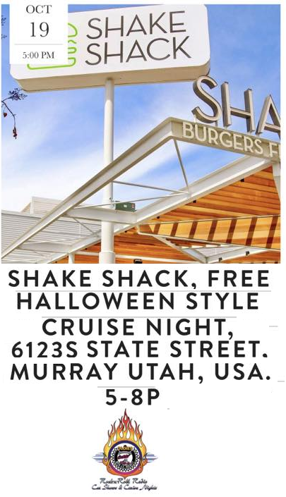 WEDNESDAY Oct 19th, SHAKE SHACK, FREE CRUISE NIGHT, HALLOWEEN STYLE Trunk-N-Treat, 6123S State Street, Murray Ut, USA. 4-8P .. A FREE Car Show Cruise Night at Murray Shake Shack, HALLOWEEN trunk N Treat. Costumes encouraged but optional, last month's event had over 122 registered,, Let's have a Trunk-N-Treat Halloween style Event, Awards, Dash Plaques, Prizes, and "Specialty Plaques*.. of course! .. We will be displaying in the North/West parking lot, please pass along this event information and make plans to join us. oh, and COME HUNGRY.. You will be very glad you did. Check our website for more Events .. <http://jchackett.com/?fbclid=IwAR2-nGgwN05eV-hzWTsXfzjitYoBOabd7h8pTpWtlk2M 7SPRbXYZq_mXwvw> jchackett.com