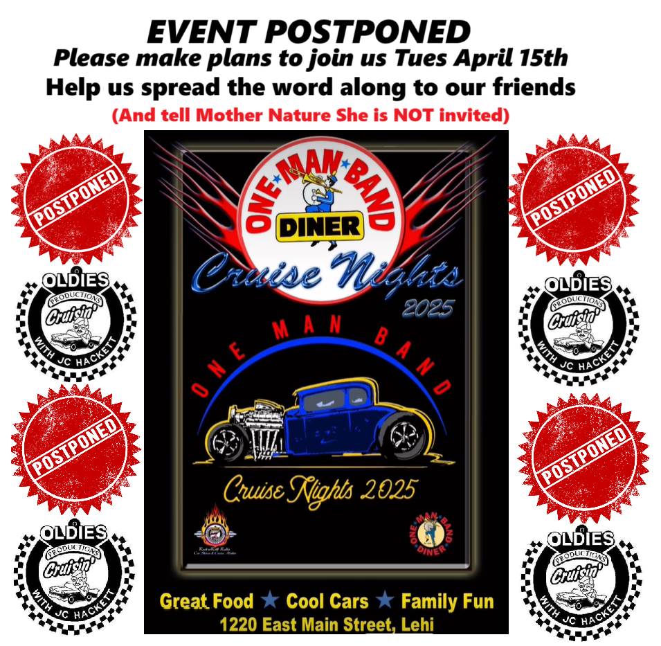 Greetings Everyone ! Spring is here - Kinda anyway !! As for whats up with ONE MAN BAND . What would have been our 1st event along the Wasatch front has been moved to April 15th. Someone invited Mother Nature and she is in "One of her Moods" SO FAR, Jordan Landing is still set for Wednesday but, Weather Pending of course ! FOR MORE EVENT INFORMATION Our Website is up and running and fresh information added almost daily! WWW.Jchackett.com <http://WWW.Jchackett.com> Oh, Wait .. There more than a little More.. Here's a little list of 2024 events we have scheduled.. Make a plan to join in.. Anytime you can, Check our Website for just a few more. <http://www.jchackett.com/> www.jchackett.com POSTPONED TO APRIL 15TH Apr, Tue 5-8pm LEHI, One Man Band FREE Cruise Night 801-766-0553 2 Apr, Wed 5-8pm Jordan Landing FREE Cruise Night, (Weather pending) 3751w 70th s. 801-282-1400 8 Apr, Tue 5-8pm Murray, Shake Shack FREE Cruise Night, 6123s State 801-448-7907 9 Apr, Wed (PENDING) Valley Fair Mall, FREE Cruise Night 3600s 2700w 801-969-6211 12 Apr, Sat Havoc St. George 300n 300n, Washington Elem 9a-3p 435-623-2617 Darren 15 Apr, Tue -- 5-8pm LEHI, One Man Band FREE Cruise Night 1220e Main St. Lehi Utah 801-766-0553 (Tax Day) 17 Apr, Thu (NO APRIL EVENT, See you May 15th) South Jordan Daybreak/Soda Row FREE Cruise Night 11248s 4700w 801-204-2775 19 Apr, Sat Summit Harley, 555 Geneva Road, 385-203-8542 20 Apr, Sun Easter Sunday 21 Apr, Mon Easter Monday 23 Apr, Wed LayTon Burger Stop FREE Cruise Night, 323e Gentile Rd 801-544-8090 25 Apr, Fri FREE MOAB CARQUEST Car Show 1010s Main Street, 4-7pm 435-260-1948 26 Apr, Sat MOAB Car Show, 435-260-1948 2 May, Fri Page Car Show Welcome Party Cruise & Registration 928-645-9023 3 May, Sat Page Arizona Warren Whistler Memorial Car Show, Page City Park, 600n Navajo 928-691-0042 <mailto:capage@yahoo.com> capage@yahoo.com **** Please do NOT "hit reply" to this email, **** It goes to a mailing service If you would like to email us,, our address is <mailto:jc@jchackett.com> jc@jchackett.com If you know of anyone who would like to receive "Cruise Event Related" information, Simply have them shoot us an email.. They will be added to our mailing list, As you see, it is "blind copied" so others will not get your address.. Please feel free to pass this along to your friends. A Most Important rule to follow.. BE NICE, Think of others, Give someone, GIVE ANYONE a SMILE.. You would be so surprised how it will make YOU feel! CHECK OUR WEBSITE FOR MORE 2024 EVENTS <http://www.jchackett.com> www.jchackett.com J.C Hackett Oldies "Rock & Roll Radio" Productions Real Oldies, KCPX P.O Box 271226 Salt Lake City, Utah 84127 Email us at <mailto:jc@jchackett.com> jc@jchackett.com -- This email has been checked for viruses by Avast antivirus software. www.avast.com