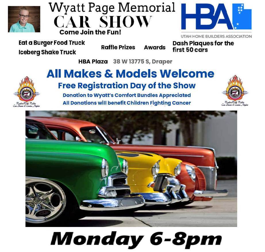 Raffle Prize Highlights: 43" Vizio Smart TV Gift Cards -Rodizio Grill, Ruth's Chris, Apollo Burger, In N Out, Texas Roadhouse, Black Bear Diner, Dutch Bros, Beans & Brew, plus More! Kneaders Gift Baskets Hale Center Theatre Tickets to Sister Act Multiple Tuachan Tickets Heber Valley Railroad Scenic train tickets Silent Auction Items: Pair of Stadium of Fire Tickets Pair of Chris Stapleton Tickets U of U Sports Season Tickets - Women's Gymnastics, Volleyball, Soccer, Women's Basketball, single game men's basketball Autographed Sports Memorabilia - Jordan Clarkson Picture, Ju Ju Smith Shuster signed football plus playing cards, Marshall Faulk signed football and picture, Lavell Edwards picture & football, Kyle Whittingham signed hat, Ron McBride signed football Plus much more!! ... Must be present to win!! Oh, Wait .. There more, .. than a little More.. Here's a little list of 2025 events we have scheduled.. Make a plan to join in.. Anytime you can, Check our Website for just a few more !! . www.jchackett.com <http://www.jchackett.com/> 23 June 23, Monday Home Builders Assn. Wyatt Page Memorial Car Show 38w 138775s, 6-8pm Fundraiser for Wyatt's Comfort Bundles FREE Car-Truck-Bike Show Doug Page 801-360-6575 24 June, Tuesday DRAPER GARAGE GRILL FREE Cruise Night 4-8pm 1122e 12300s 25 Jun, Wed LayTon BurgerStop FREE Cruise Night, 323e Gentile Rd 801-544-8090 27 Jun, Fri Heber.. Welcome Party, Heber City Park, 6pm 801-450-4494 28 Jun, Sat Heber Car Show, Heber City Park 8-3p 801-450-4494 3 Jul, Thursday Cache Valley Cruise-in Car Show, Cache Valley Fairgrounds 435-787-7414 450s 500w Logan Utah Poker Run, Swap Meet, CONCERT 6pm !!! 4 Jul, Friday Cache Valley Cruise-in Car Show, Cache Valley Fairgrounds 435-787-7414 450s 500w Logan Utah Independence Day Swap Meet, Bear Lake Cruise, Sock-hop 5 Jul, Saturday Cache Valley Cruise-in Car Show, Cache Valley Fairgrounds 435-787-7414 450s 500w Logan Utah Car Give Away 6pm - SHARP ! **** Please do NOT "hit reply" to this email, **** It goes to a mailing service If you would like to email us,, our address is <mailto:jc@jchackett.com> jc@jchackett.com If you know of anyone who would like to receive "Cruise Event Related" information, Simply have them shoot us an email.. They will be added to our mailing list, As you see, it is "blind copied" so others will not get your address.. Please feel free to pass this along to your friends. A Most Important rule to follow.. BE NICE, Think of others, Give someone, GIVE ANYONE a SMILE.. You would be so surprised how it will make YOU feel! CHECK OUR WEBSITE FOR MORE 2025 EVENTS www.jchackett.com <http://www.jchackett.com> J.C Hackett Oldies "Rock & Roll Radio" Productions Real Oldies, KCPX P.O Box 271226 Salt Lake City, Utah 84127 Website <http://www.jchackett.com> www.jchackett.com Email us at jc@jchackett.com <mailto:jc@jchackett.com>