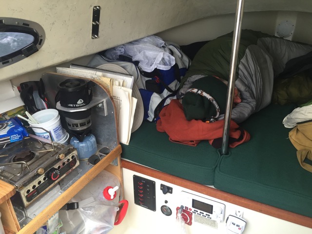 On 3/1/2016 1:58 PM, Thomas Buzzi wrote: Tom, The M15 has a filler piece that make the berth a beautiful big sleeping area. I used that as the kitchen surface. My first thought was to put some Formica on the upper surface so that it would be easier to keep clean; but then I decided that if I was a careful galley cook, and kept the surface clean, then why go to the trouble of cutting and fitting a Formica surface? I put it aft in the cockpit; marked where the cockpit walls were located and then added some cleats at that spot so that the filler piece can't slide or move, if a wave from a motorboat hits you. Now that you have a galley working area, you need protection from the sun or the rain to use it under all conditions. That was what my BIMINI did. Connie