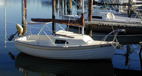 I may be short on sailing experience, but I'm long on mechanical know-how, and I'm really gonna have fun with fixing up this boat. I'm going to get those keel guides on the trailer first... get a second pair of reef points on the sail... then I'm going to cut out the starboard locker like Connie describes, and put catches on the lockers. And I'll bet that you could mount one of those low-profile butane stoves to one of the plywood storage covers in the cabin, and flip it upside down when you weren't using it, securing it with rotating clips. And so much more....