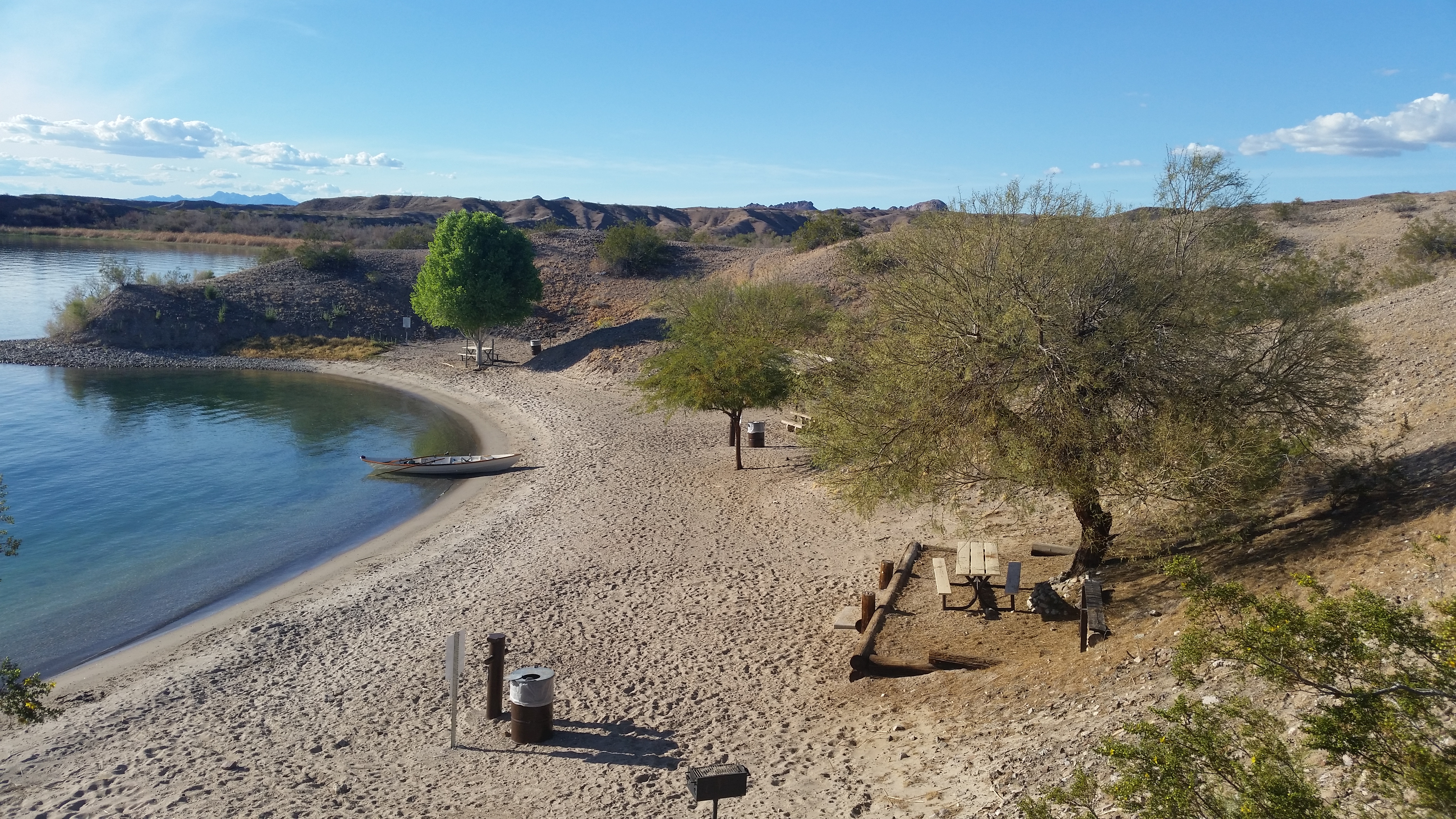 Lake Havasu in Arizona is a great cruising ground. The southern part of the lake has 80 boat in only campgrounds and all of them have a sandy beach or very light pebbles. They have picnic tables and toilets. The lake is 30 miles long and if you want entertainment there is always lake Havasu city. Best of all it is only about 6 hours from Oceanside. I usually do a week long cruise there every year.