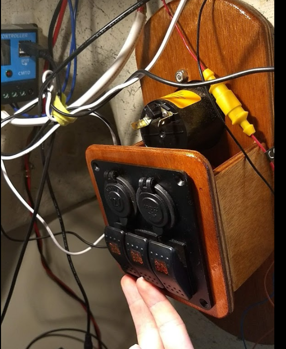 I tried portable/battery powered lights from Aqua Signal. Something went wrong with the bicolor navigation light pretty quickly, and despite being LED they seemed to eat batteries. Finally I decided to bite the bullet and install a small electrical system. It turned out to be pretty easy and I really like being able to flip a switch and getting good, bright, reliable lighting. I installed these on the front sides of the boat: https://www.amazon.com/gp/product/B01AGR4T3U/ref=ppx_yo_dt_b_search_asin_tit... and this on the transom: https://www.amazon.com/gp/product/B01LQTJ3TM/ref=ppx_yo_dt_b_search_asin_tit... I put this switch in a small wooden frame to control things: https://www.amazon.com/gp/product/B01N3W14NH/ref=ppx_yo_dt_b_search_asin_tit... I'm not sure if photos will come through, but this is how it looks (port side front light): [image: image.png] [image: image.png] Mount for the switch just inside the cabin (wires were cleaned up a bit after install). [image: image.png] With the switches installed and solar controller in the back. [image: image.png] Living in the lap of modern luxury ;) Sam On Tue, Oct 20, 2020 at 8:18 AM Dave Scobie <scoobscobie@gmail.com> wrote: