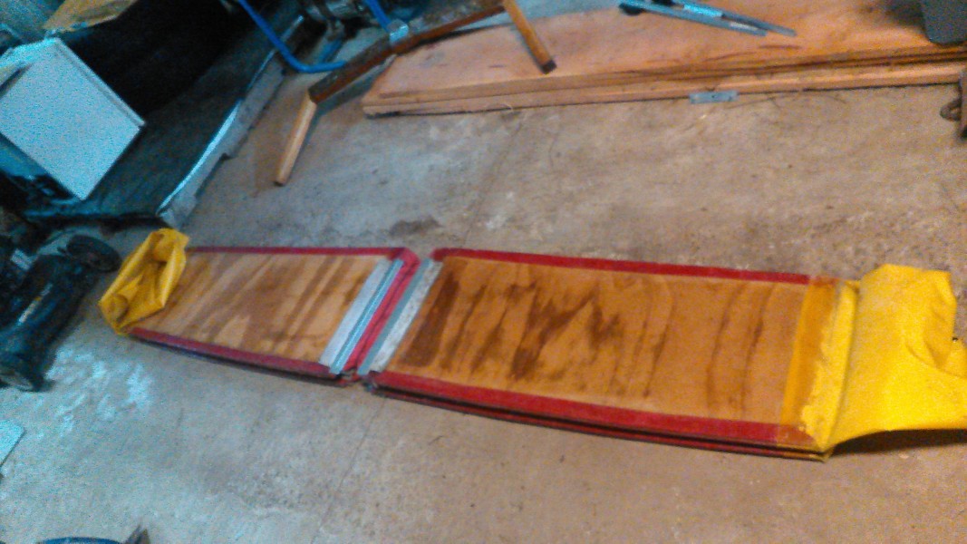 I've been working on this project for awhile and I thought I'd showoff with a few pictures. Basically it is a folding dinghy that folds down to 46" long and about 8" thick that fits across the transom of the M15. Takes about 5 minutes to assemble and faster to take down, but I'm working to try and improve that.