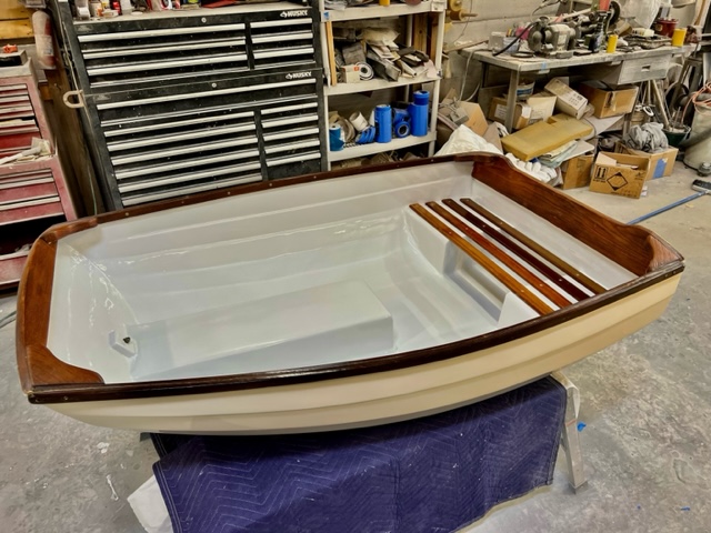 Well, it was a long time in coming but it was definitely worth the wait. Ten years ago I stumbled across a rare M-5’8”. It was severely abused and needed lots of love. I had visions of restoring this little gem and came to the conclusion this project was going to be challenging. If I were to be successful with this restoration, I would need to use my ultimate multi-purpose tool. It can fix anything with ease. So I broke out my checkbook and took the little pram to a professional. This past weekend I picked up my renewed boat! The only problem I discovered..….the Chesapeake Bay and it's tributaries are so dirty, I’m not sure I want to place my new boat in such murky water! It would be an absolute shame to get this little gem dirty. 🤣