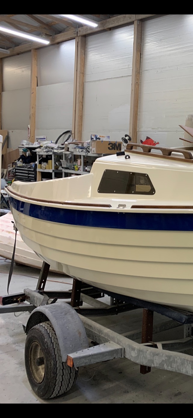 Well, it was a long time in coming but it was definitely worth the wait. Ten years ago I stumbled across a rare M-5’8”. It was severely abused and needed lots of love. I had visions of restoring this little gem and came to the conclusion this project was going to be challenging. If I were to be successful with this restoration, I would need to use my ultimate multi-purpose tool. It can fix anything with ease. So I broke out my checkbook and took the little pram to a professional. This past weekend I picked up my renewed boat! The only problem I discovered..….the Chesapeake Bay and it's tributaries are so dirty, I’m not sure I want to place my new boat in such murky water! It would be an absolute shame to get this little gem dirty. 🤣 I’ve attached a few before and after pictures. My goal was to restored the pram to match my M-15. I plan to tow the pram behind me when I’m out for long weekends. I’m sure there’ll be a learning curve figuring out how best to tow the pram and transitioning between the two. But this will have to wait until spring. Skip Campion M-15 “Wild Guppy” 1982 #201 M-5’8” “Lil’ Guppy” 1972 #028