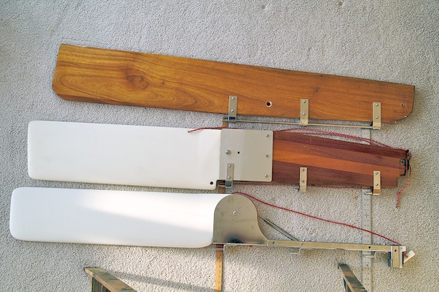 Here's a photo of the normal wood rudder and 2 generations of the Ida Sailor rudder that Gary Hyde provided. (Thanks Gary)