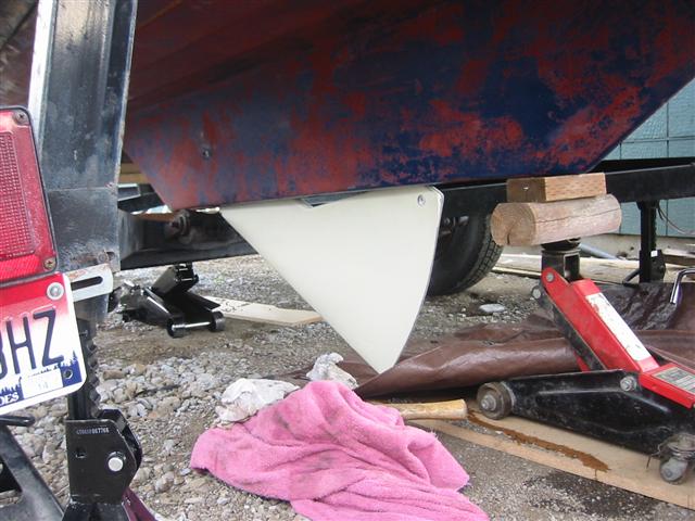 Friends, I found this picture showing the fiberglass centerboard fully extended within the trunk of our M17. If you look closely you can see the attachment point for the pennant to the CB. This attachment on our boat was done using a shackle. The last several inches of the pennant were de-cored so that the knot attaching the pennant to the shackle remained small enough to easily pass through the CB trunk cavity. Some other pictures are available here http://www.msogphotosite.com/M17Bunk.html Randy G. M17 410