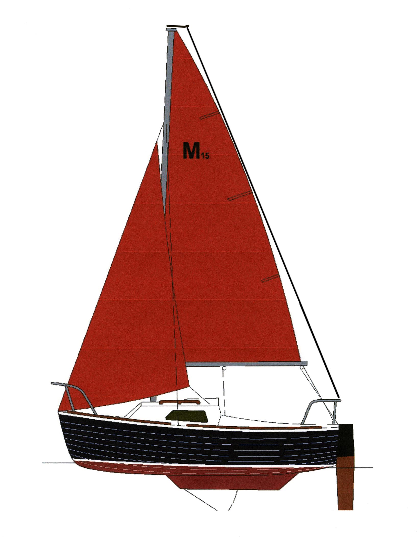 I have a backstay on my M-15. It splits about 6’ up from the bottom and attaches at each stern corner. At the top of the mast it attaches to a horizontal strut that pushes it back about 6”. I’m attaching a picture. I like having a backstay. I do not like the rest of my mainsail rig which involves roller furling towards the mast. I’m soon going to rerig it to be a normal main with reef points. Best regards, David from East Granby, CT