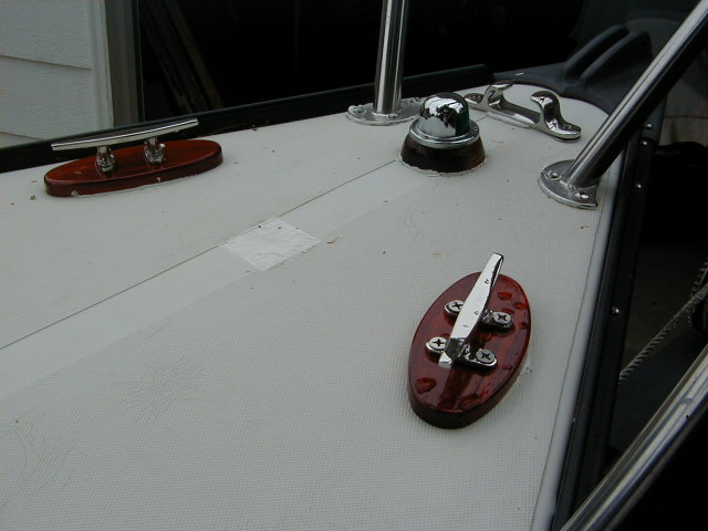Most of my prior boats have had one or two cleats centered on the foredeck and chocks on, in or next to the toe-rails a little aft of the bow. I'll probably just stick with that layout, upgrading the existing cleat to a larger Herreshoff-style one and mounting the chocks on teak pads just inside the toe-rails.
