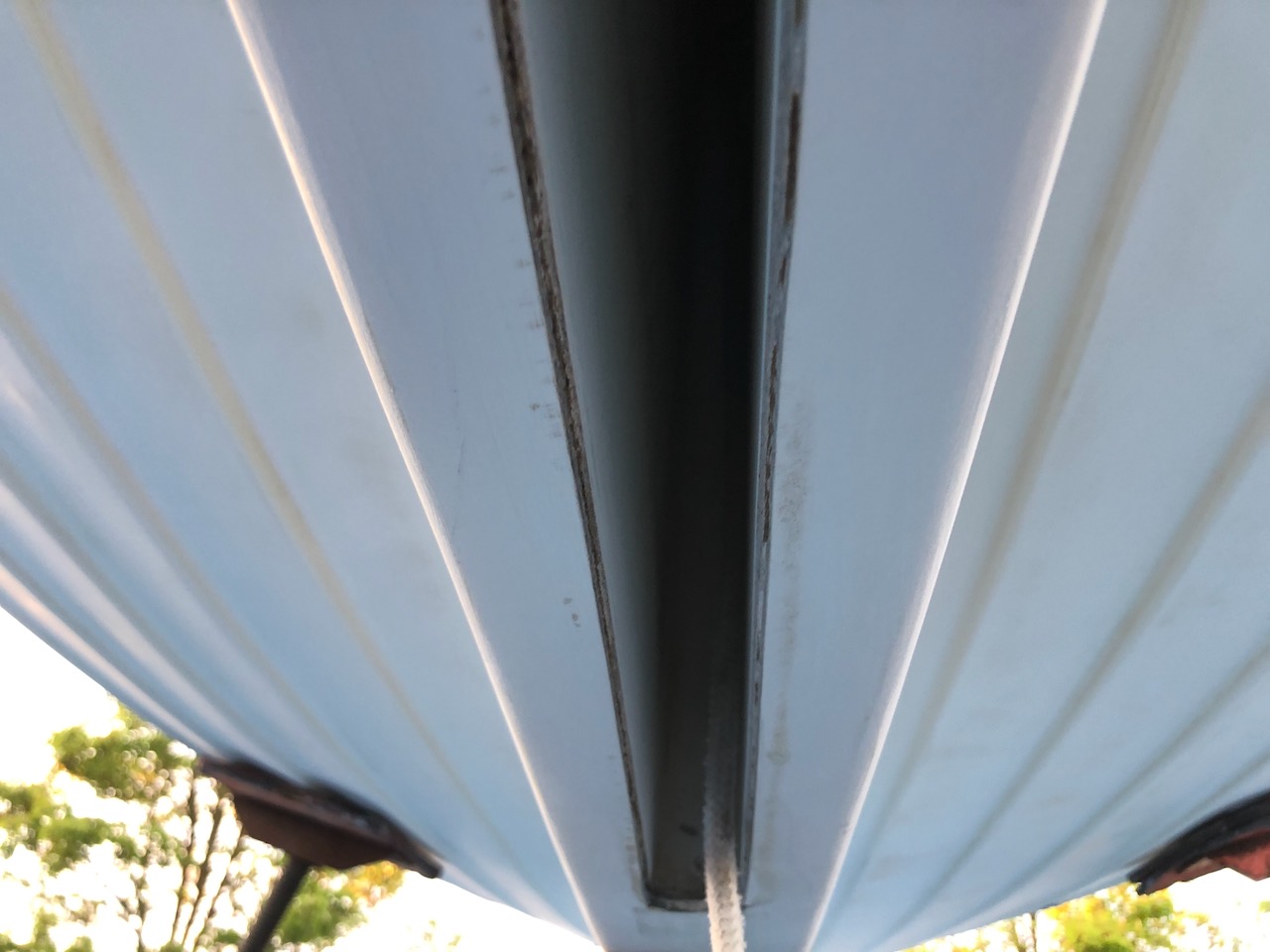 When I first launched the boat after purchase, I noticed a slight bind when lowering the board. I thought at the time that the pennant was binding somewhere when in fact, even without bottom paint, there was interference between the trunk and centerboard.