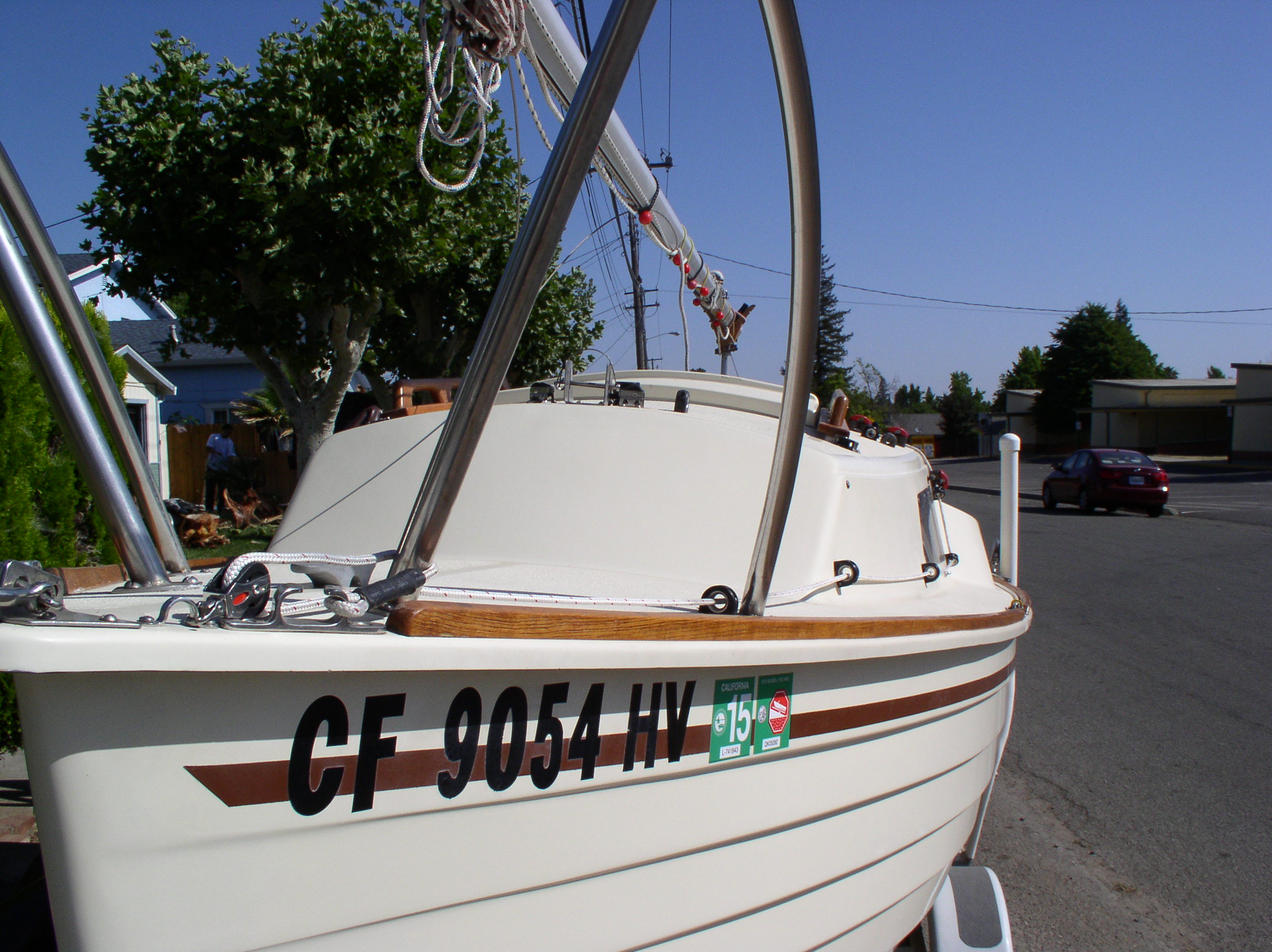 Ian, here are some photos of my M-15 that is now for sale. The price is $3400. Spare tire never used. Rudder was refinished to like new condition with protective cover. Comes with anchor, never used by myself. Thedford 135 Porta Potty never used. Recent Fire Extinguisher at full pressure. Price includes near new, 5 hour Nissan 3.5 hp four stroke outboard aux power w/ long shaft. Has forward and neutral. This engine is spun around 180 degrees to achieve reverse direction when at dock. --- Larry Hughston home: 916 922-0526 at work: 916 922-375-4217 or email me. (Cash only please) -----Original Message----- From: montgomery_boats [mailto:montgomery_boats-bounces@mailman.xmission.com] On Behalf Of Ian Black Sent: Wednesday, June 04, 2014 8:50 AM To: For and about Montgomery Sailboats Subject: Re: M_Boats: M-15 For Sale in Sacramento The big question is how much? Pictures would be nice and the year it was built. Thanks, Ian -----Original Message----- From: Hughston, Larry@DGS Sent: Tuesday, June 03, 2014 9:34 AM To: montgomery_boats@mailman.xmission.com Subject: M_Boats: M-15 For Sale in Sacramento Hi M-Boaters. I am selling my M-15 with trailer and low hour Nissan 3.5 hp outboard. Boat and trailer in very good condition. Will send images if requested. Sails are good, Main is fair. Lots of cosmetic work done to bring her back. Email me at lahughston@att.net<mailto:lahughston@att.net> at home. --- Larry Hughston (Hi Jerry M. Met you at Beals Point, Folsom Lake several years ago. I called you "Master", I was serious ! ....and thank you for your great boat designs with "wrinkles". Thanks again Jerry.) --- LH