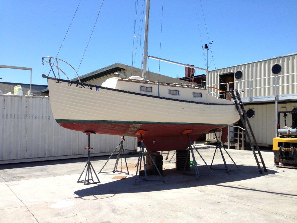 Sure looks great I am sure she will sail/serve you well in the years ahead. George Merry Helen M15 #602 'We Can Not Control the Wind But We Can Adjust our Sails' -----Original Message----- From: montgomery_boats-bounces@mailman.xmission.com [mailto:montgomery_boats-bounces@mailman.xmission.com] On Behalf Of Todd Bradley Sent: Tuesday, June 18, 2013 5:17 PM To: montgomery_boats@mailman.xmission.com Subject: M_Boats: Update 23' Hi everyone - thought I would post a brief update on my progress (journey) on the boat currently know as Ce Cee. A week or so ago, I went to pick up the new Pacific trailer so I could get the boat on a trailer and closer to me. This would make it easier to do the work (she is in San Francisco bay area and I am in Sacramento about 2 hours away). When we tried to get her on the trailer the center-board was stuck down. After trying again to raise the CB (with more force this time) we broke off one of the blocks the pulley cable runs through. So, plan 'B'.. time to hire professionals. I went over to the boat yard and got on the schedule to get the boat hauled and see if we could get the CB to budge. I ended up having the boat yard pull the CB. I had them load it up in my truck and I was off to the sandblaster. I returned a few days later with the sandblasted CB. I made sure we had it set-up that we could get a primer coat on the raw CB within hours of the sandblasting (picked this from Sean's postings on his site. Thanks Sean). I decided to bite the bullet and pay the yard to get the CB faired and painted up also. This should be complete late this week and I'll head back down with the trailer and pick her up. The hull looks in pretty good shape. No blisters that we could see! I can wait to get her in my driveway so I can start doing some of the other repairs! Todd