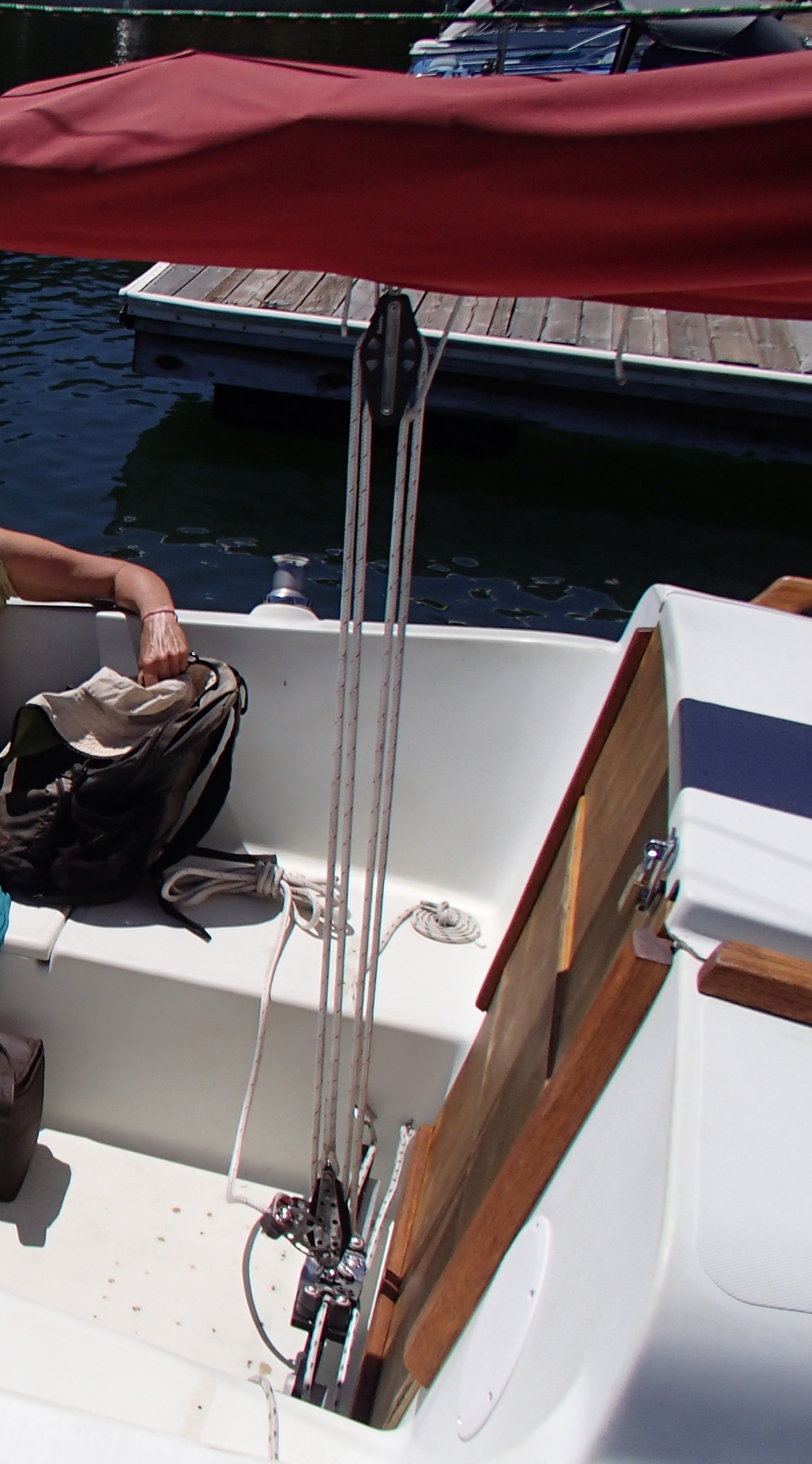 These photos are all so helpful. Each time I go back I notice more, and recognize there are many ways to do things. The key is to make it efficient and easily adjustable for me I suppose. This club we joined has some active weekend handicap racers. I think I'll upgrade both traveler and main sheet quickly.