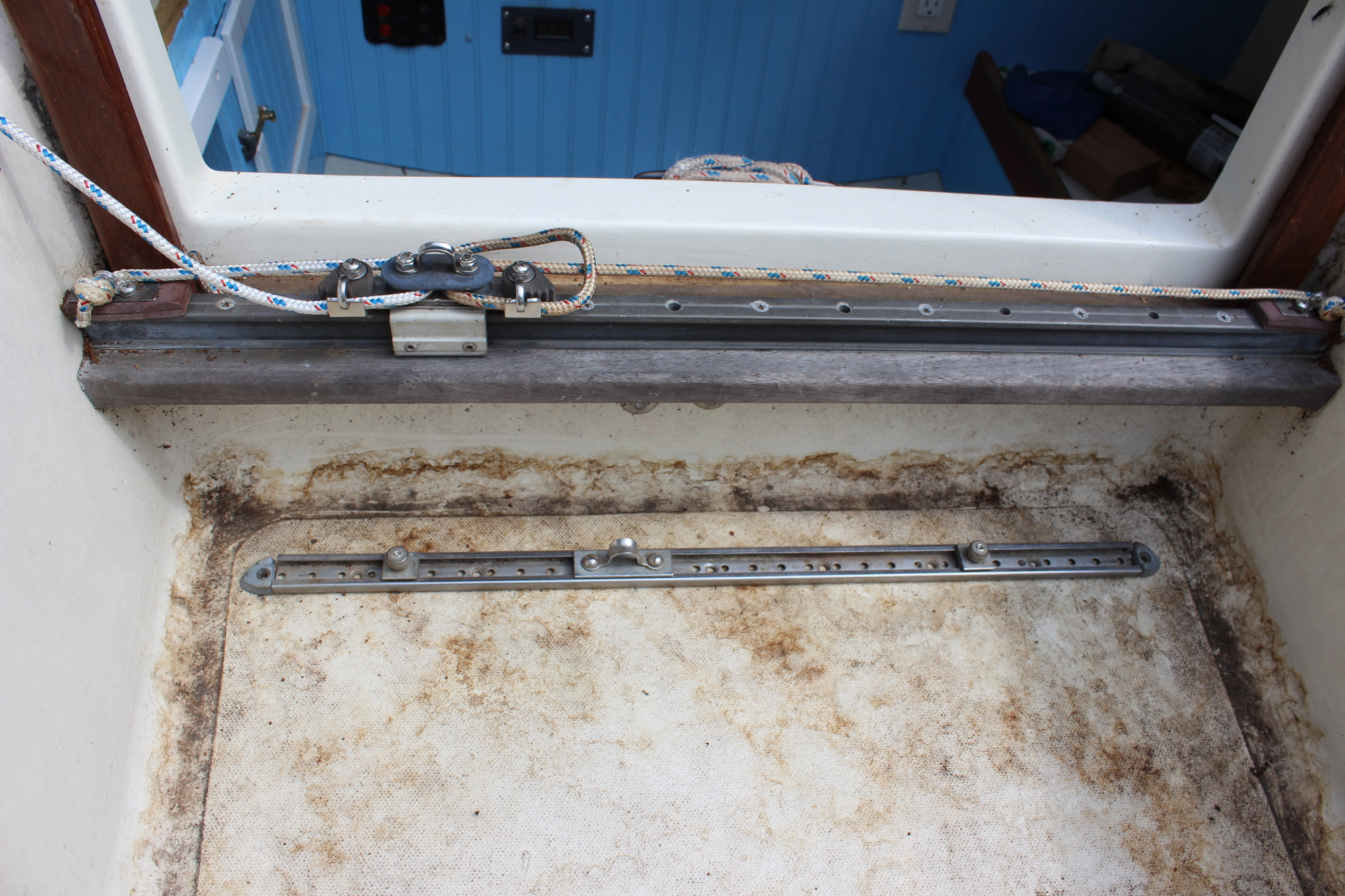 Here's some (reduced size) pics TomB posted quite a while back, showing his OEM traveler on cockpit floor (like yours presumably, fixed locations with a pin to hold in a given position). And, a movable traveler he rigged up, showing more or less what you describe. A sliding 'car' (where the traveler block attaches), a piece of 'track' for it to slide on, lines through sheaves to move it each direction, one line fast to each side, and cam cleats to hold line(s) in position. In this case IIRC Tom found some old integrated sheaves/cams that are somewhat unusual, but the basic setup is the same. There are a variety of flavors of this basic design. Main difference is what track and car you use, and how the free ends of the lines are routed to where you manipulate them. Some hardware vendors sell kits or packages for this purpose. Some have a single loop of line rather than two separate lines. The uber-fancy version is called a "windward sheeting car." It has a similar setup, but it automatically releases the cam on the leeward line (by tension of sheet on a mechanical system built into the car). So you only have to pull in or let out the windward line to adjust traveler position. They are stupid expensive new, but one happened to come with my boat when I bought it, so I have that. cheers, John -- John Schinnerer - M.A., Whole Systems Design -------------------------------------------- - Eco-Living - Whole Systems Design Services People - Place - Learning - Integration john@eco-living.net - 510.982.1334 http://eco-living.net http://sociocracyconsulting.com