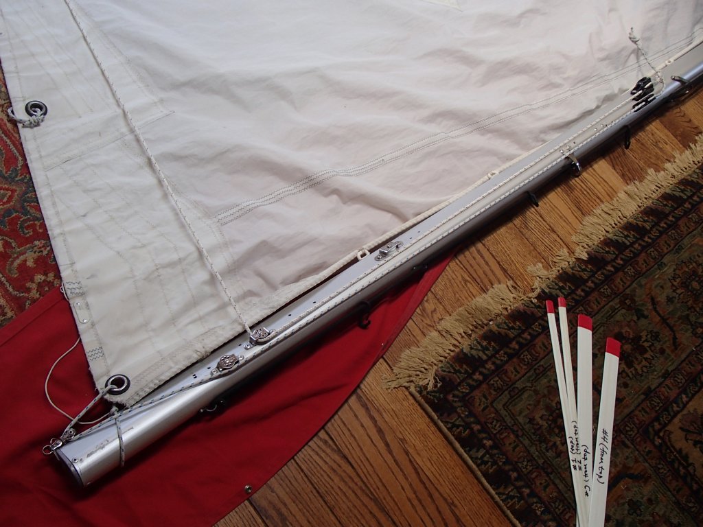 John, you mentioned cheek blocks and clamcleats on starboard side of your boom for clew reefing; are there some form of eye straps used as anchor points on the port side?