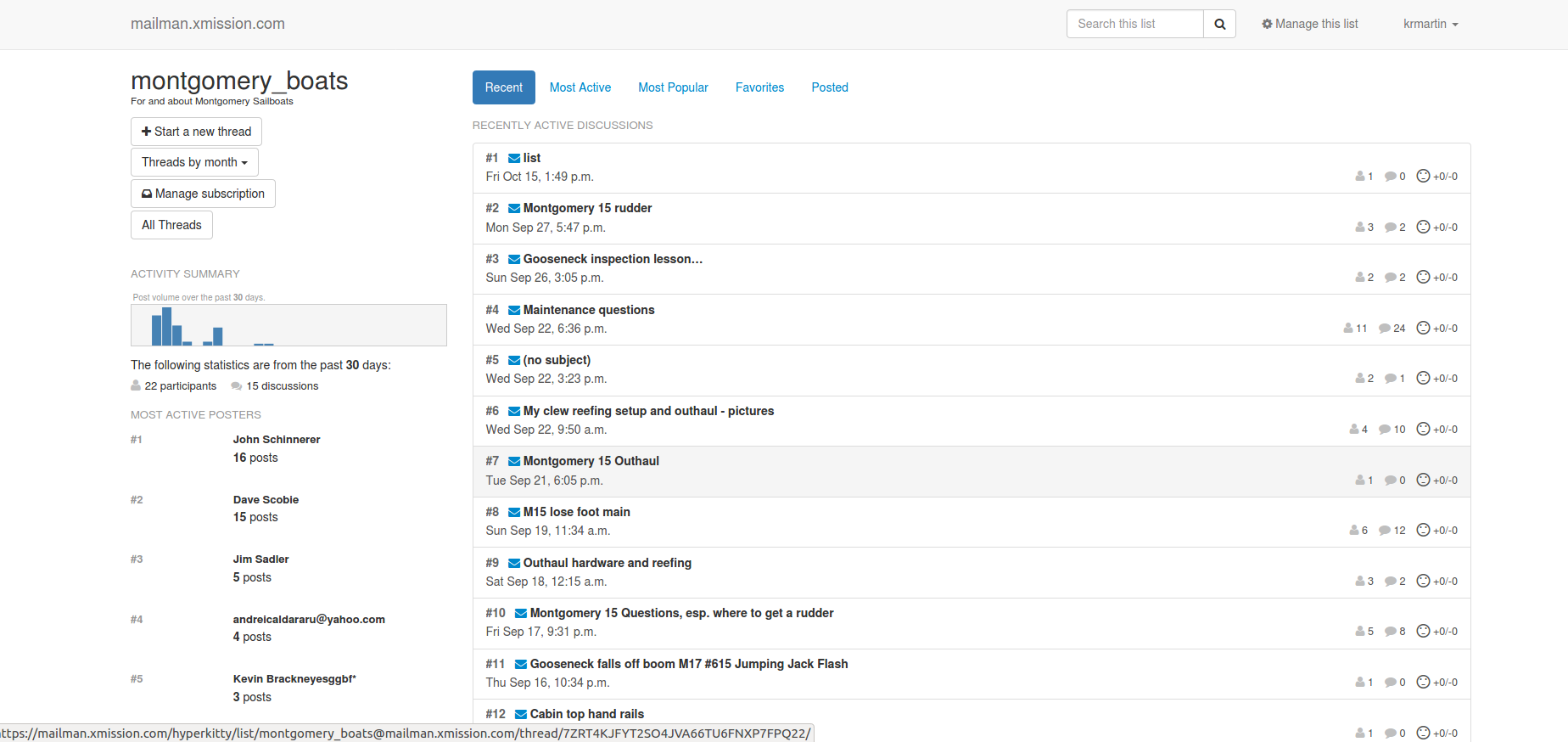 Hi Jerry & Sal, From everything I can see the list service is running just fine, it's just been a little quiet on the list in the past few weeks... [image: Screenshot from 2021-10-15 12-58-54.png] Best Regards, Keith *Keith R. Martin* *Vancouver/Burnaby B.C.* *Serenity M17, #353* *http://www.msogphotosite.com/Scripts/Boats/boatsdetail.php?id=105 <http://www.msogphotosite.com/Scripts/Boats/boatsdetail.php?id=105>* *Admin: Montgomery_boats List Server* On Fri, 15 Oct 2021 at 12:50, jerry montgomery <jmbn1@outlook.com> wrote: