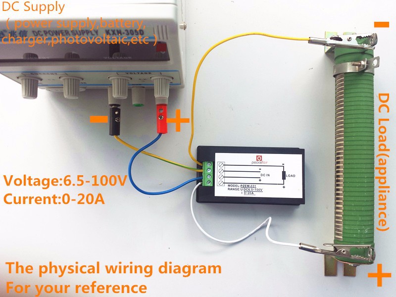 Late to the party but I concur with Mitch and John's last post... *1. Power supply (battery) to “+” and “-“. Disconnect the battery from everything else. 2. Connect “+ load” and “- load” where the battery used to connect.* Attached I think is the picture John was talking about showing a practical wiring connection for the device in lab bench setting. I would definitely put an inline fuse on this, and given the low cost of the device if it were me I would limit the fuse to 10A .. Given the low cost of the device, if you think you need more than 10A on the boat I would have a hard look at the device to make sure it could safely sustain the higher currents. Keith *Keith R. Martin, P.Eng.* *Burnaby, B.C. CanadaSerenity,** M17 Hull #353* On 20 February 2016 at 11:46, John Schinnerer <john@eco-living.net> wrote:
