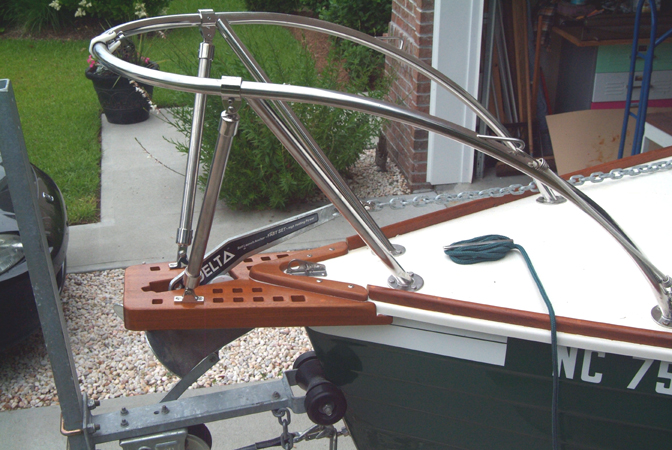 I have been meaning to post this for awhile and I wasn't quite sure about how to do it. I hope this will work as I would like to share this project with others on the site. It was allot of work to make this however it does dress up the boat nicely and allows launching the anchor from the cockpit. Missing from this picture is one more roller that is mounted to the stansion that holds the top of the anchor up so it self deploys under its own weight.