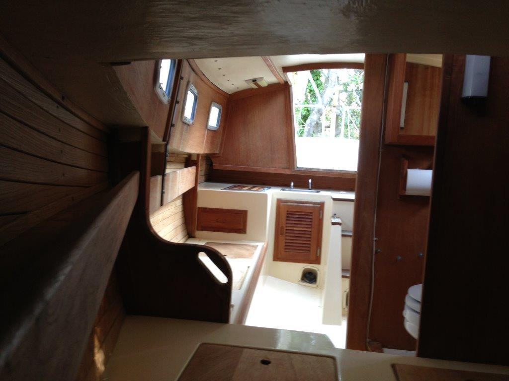 I spent the weekend removing all loose items from the cabin so I could have a good clean in there. There were small mildew spots on the cabin top fiberglass headliner and other surfaces. So I mixed bleach & detergent concoction I got out of Don Casey's book and wiped down the whole inside. Smell a lot better in there now! See attached pictures.