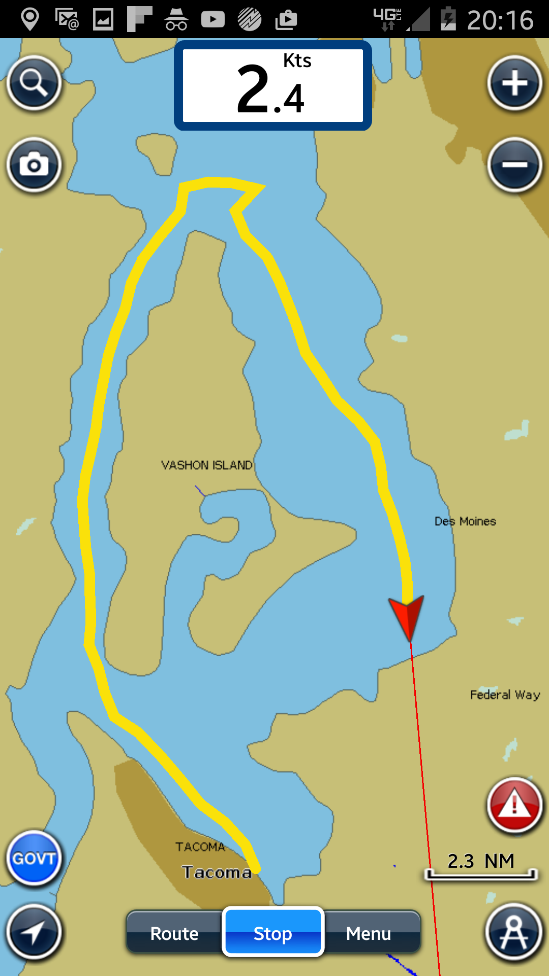 > That's navionics boating hd... north point is testing me! > On Jul 19, 2016 12:48 PM, "Ron Carter" <rcarter209@att.net> wrote: > >> Jazzy, what app are you using for your navigation! >> >> Ron Carter >> Willis, TX >> 918-629-5531 >> rcarter209@att.net >> >> >> >> > On Jul 19, 2016, at 12:51 PM, Jazzy <jazzydaze@gmail.com> wrote: >> > >> >> On Jul 19, 2016 10:48 AM, "Jazzy" <jazzydaze@gmail.com> wrote: >> >> >> >> The stars finally lined up and I'm making an attempt to circumnavigate >> >> vashon island! No wind right now...motoring with current. Wind >> should be >> >> there for the run home! How nice...dog, sun, beer and a worthy boat. >> I'm >> >> taking hourly logs, noting position and battery status. Nothing but an >> >> iPad on it at the moment and it is drawing .09 amps. >> >> >> >> I'll update. .. >> >> >> >> Cheers! >> >> Jazzy >> > <Screenshot_2016-07-19-10-13-01.png> >> > <Screenshot_2016-07-19-10-43-56.png> >> >>