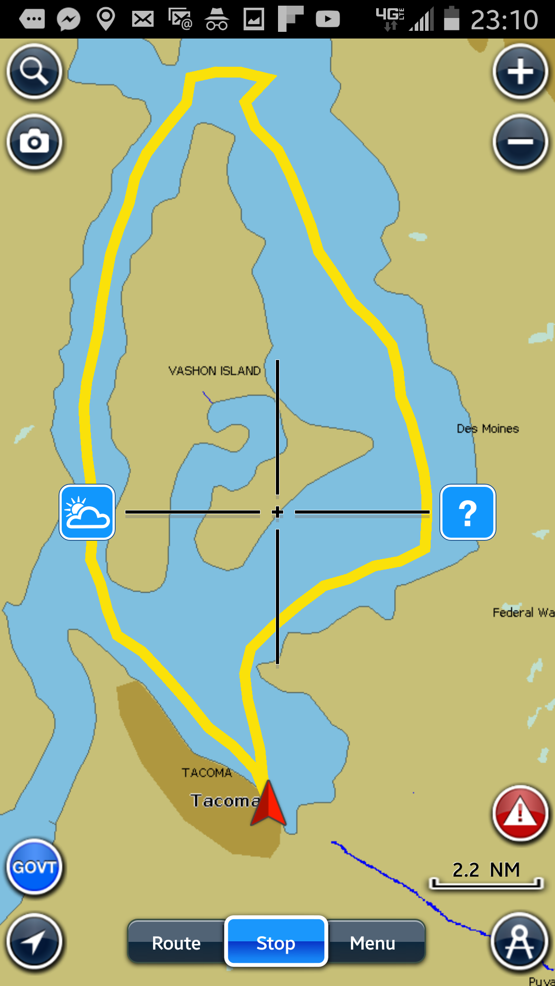 > Close reach, wind from the south...I think I'm going the right way..hahah! > Going to hold here a bit longer then tack. Is that reasonable? Just had > some mac n cheese..life's good. > > Jazz > On Jul 19, 2016 1:17 PM, "Jazzy" <jazzydaze@gmail.com> wrote: > >> That's navionics boating hd... north point is testing me! >> On Jul 19, 2016 12:48 PM, "Ron Carter" <rcarter209@att.net> wrote: >> >>> Jazzy, what app are you using for your navigation! >>> >>> Ron Carter >>> Willis, TX >>> 918-629-5531 >>> rcarter209@att.net >>> >>> >>> >>>> On Jul 19, 2016, at 12:51 PM, Jazzy <jazzydaze@gmail.com> wrote: >>>>> On Jul 19, 2016 10:48 AM, "Jazzy" <jazzydaze@gmail.com> wrote: >>>>> >>>>> The stars finally lined up and I'm making an attempt to > circumnavigate >>>>> vashon island! No wind right now...motoring with current. Wind >>> should be >>>>> there for the run home! How nice...dog, sun, beer and a worthy boat. >>> I'm >>>>> taking hourly logs, noting position and battery status. Nothing but > an >>>>> iPad on it at the moment and it is drawing .09 amps. >>>>> >>>>> I'll update. .. >>>>> >>>>> Cheers! >>>>> Jazzy >>>> <Screenshot_2016-07-19-10-13-01.png> >>>> <Screenshot_2016-07-19-10-43-56.png> >>>