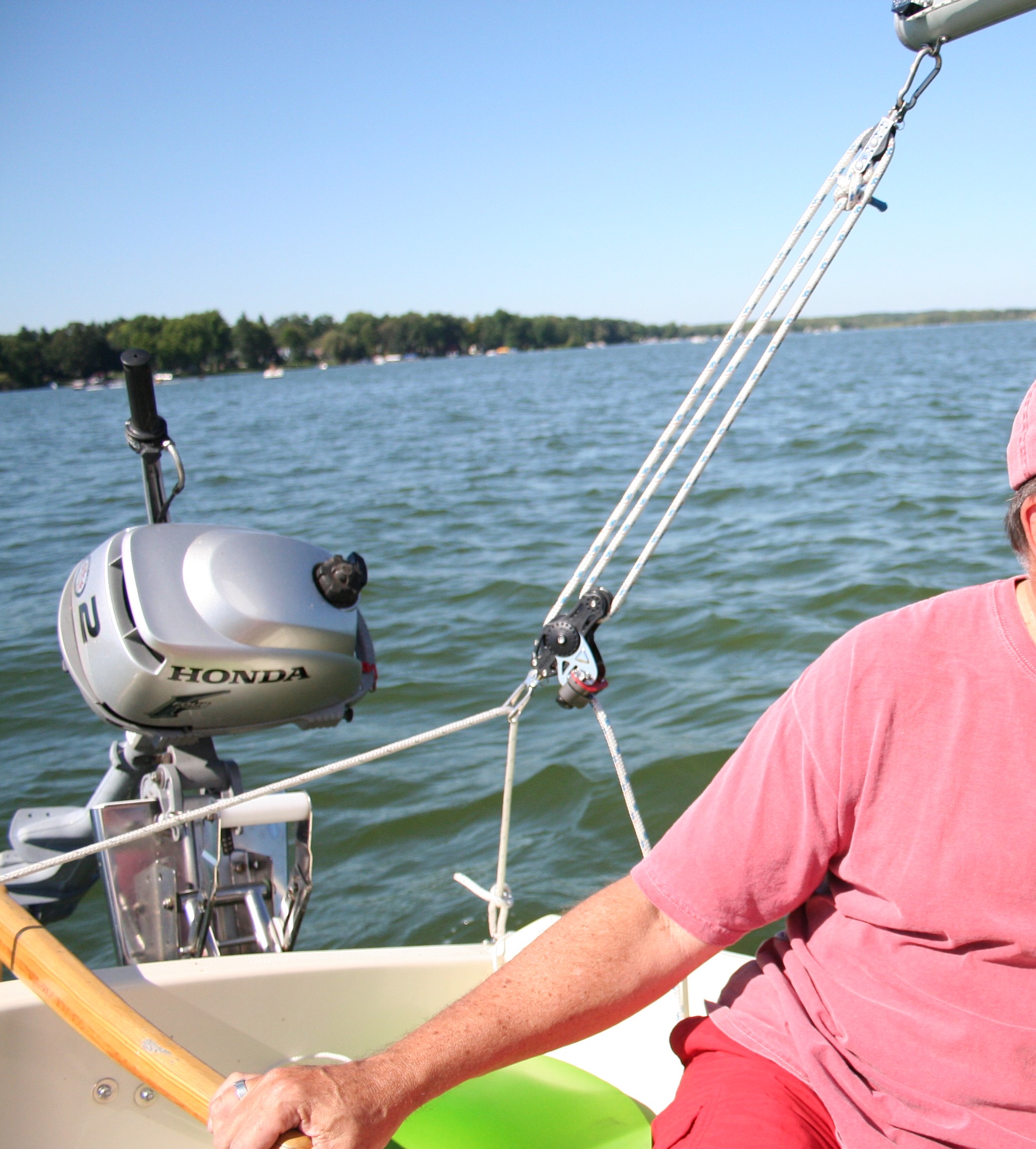 As you know, the Montgomery 17 boom sheeting is done mid-boom, with a traveler in the floor of the cockpit. I have been thinking about moving the sheet to the boom end to get the sheet out of the middle of the cockpit. I am considering installing a fiddle block on the boom end, with single block with becket on one quarter, and a single block on the other, similar to the Norsea 27 sheeting arrangement.