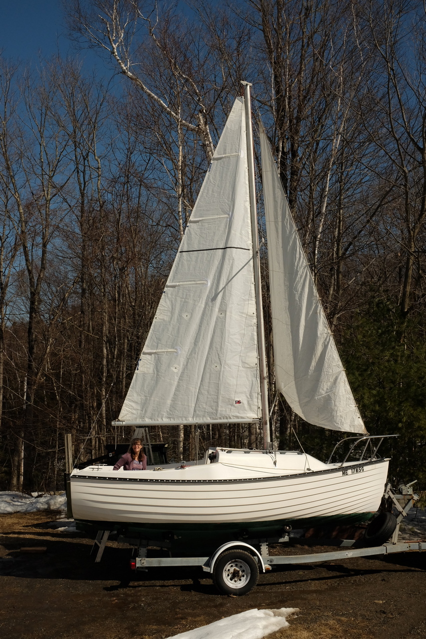 So today we lowered the mast to put in halyards, then raised it again and tried putting the sails on/up. So far so good. I raised the jib enough so the foot cleared the pulpit, then checked the fit of the whisker pole. If it's supposed to work with this sail and if it should be close to horizontal, that pad eye on the mast should move up to about 40" from the base. Right now it's 22" up from base. Everything else looks good to me; we took a lot of measurements so we know where the boom sits and where to open up the slot for inserting the gooseneck. Next step, order the mast and get the boat off the trailer to remove the centerboard. On Tuesday, March 19, 2019, 9:19:21 PM EDT, <swwheatley@comcast.net> wrote: Also, that traveler is original equipment. I have been using one of those since I got my boat but plan to upgrade to a Ronstan line control traveler this spring.