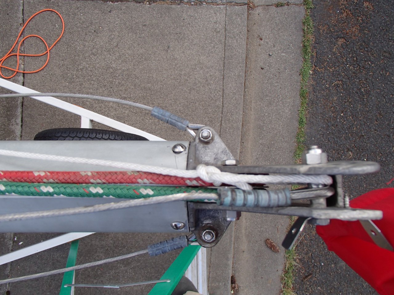 Main thing though is you can see the halyards (green for main on starboard, red for jib on port) thru the masthead and sheaves. Can't see detail of the sheaves well in these pics but obviously it all fits thru OK. Couldn't be any wider but is fine as it is.