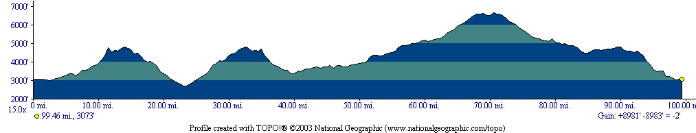 Update on this year's route. Start in Ivins city park and the basis will be the clockwise loop out through the town of Gunlock to Veyo and back to Ivins through Snow Canyon State Park (42-mile distance). For the 65-mile distance and the 100-mile distance we will take a turn (old Hwy 91) up, over and down Utah Hill to the Arizona border. Then we'll return to the "Y" and make a left back onto the loop. At Veyo the 100-milers will take a spur north on Hwy 18 to Pine Valley. Practice your hills and bring your granny gear. The long course provides about 9000 feet of vertical and hopefully some good warm weather. Tom Coffey
