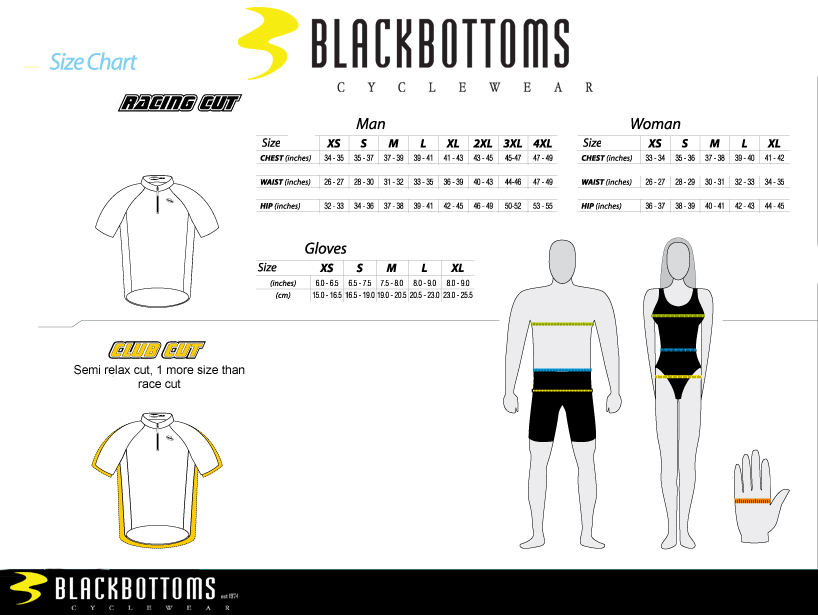 To all those of you who have ordered jersey/s and/or shorts I have attached a sizing chart for both, along with a picture of both. Understand, the size chart uses race-cut sizes. If you would like the club-cut, please go up one-size. Please inform me as to which cut you are ordering. Also, if you would let me know ASAP it would be greatly appreciated! I'm trying to get these into our hands by the first week of June. The final price will be $30/jersey and $50/shorts. If I don't hear from you by tomorrow (Thursday 4-26) I will assume your original order and size is correct and will place the order. If you haven't ordered yet and would still like to respond promptly. Thank you very much, Brent Williams-Team BBTC coordinator
