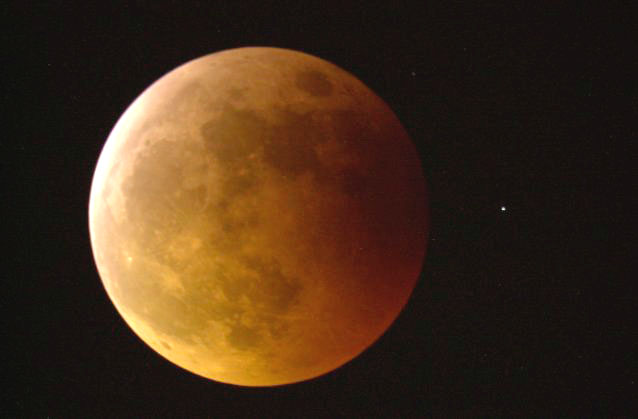 Hi Friends, if anyone is interested, here's a view I took of the moon through my little 8" Thursday night -- I would love to know what star that is by the right. It's similar to the photo the Deseret News ran with my article about the eclipse, because our photographer shot through my telescope. But this is one I took with a different DN digital camera than the one he was using. It's part of a series of views I made. Once I get a freeware stacking program working better, I may be able to provide a much nicer view. Best wishes, Joe Joe Bauman science & military reporter Deseret News bau@desnews.com (801) 237-2169
