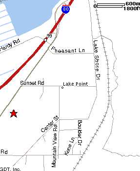The red star in the attached image shows the observing location while the truck stop is located on what the map shows as Pheasant Lane.