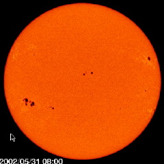 A large and potentially active sunspot complex rotated into view around the south-eastern limb of the Sun on 27 May. This sunspot complex, identified as active sunspot Region 9973, currently measures 960 millionths of the solar hemisphere. This is large enough to completely map a little more than five and half times the entire surface area of the Earth into the sunspot complex. It may be large enough to spot with the protected naked eye (never look at the sun directly without protection - doing so could permanently damage your eyes!).